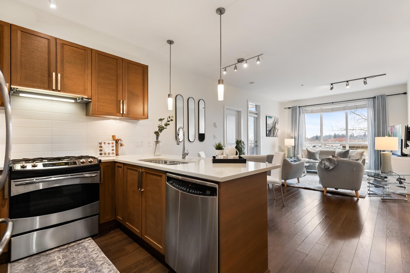 Welcome to the highly sought after Summit House in the heart of Grandview Heights! This spacious 942 SF unit shows pride of ownership! Functional layout with an open concept main living area flooded with natural light and 2 large bedrooms, each equipped with a walk in closet & 2 bathrooms on opposite sides of the unit. Step onto your covered balcony with beautiful mountain views to the east & enjoy the morning sunrise. 2 PARKING & 1 storage locker included. Rentals allowed (no short term) & 2 dogs or cats allowed (no size restrictions). Located steps away from all of the amenities & shops that Morgan Crossing/Grandview Corners has to offer & a short walk to parks & schools. Don't miss out!