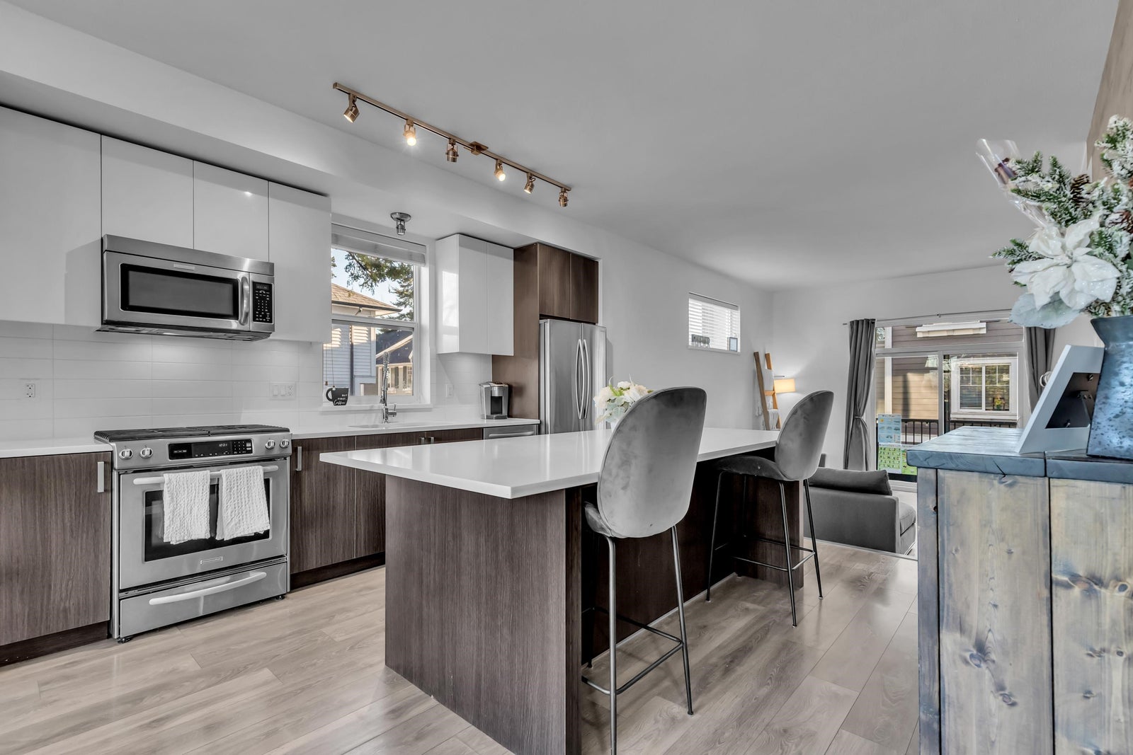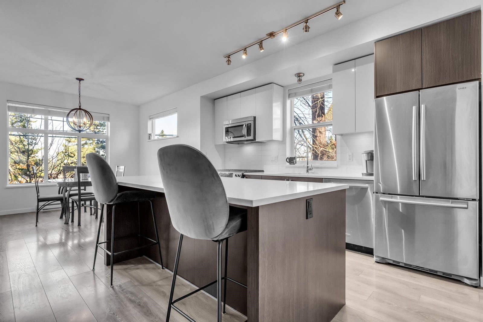 Welcome to Semiahmoo Trail, built by the popular Dawson + Sawyer! Calling all buyers to this stunning & well cared for end unit. Loaded with trendy features, including a gourmet kitchen equipped with stainless steel appliances, a gas range, quartz countertops & a built in pantry. Enjoy tons of natural light through the large windows and relax in your spacious sunken living room with an over height ceiling. Upstairs features 3 full bedrooms & 2 bathrooms for families, or those needing extra home office/flex space. Tons of room in the double tandem garage for 2 vehicles and lots of storage. Bonus, city street parking close by for extra parking flexibility. Located a short distance to shopping, amenities, restaurants, parks, public/private schools & public transit. Don't miss out!