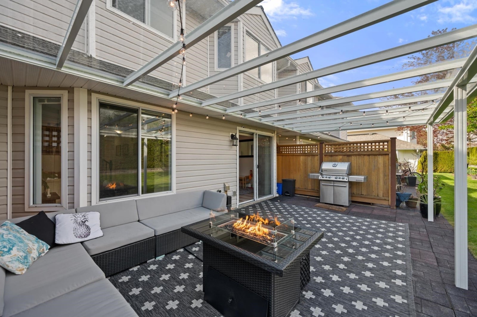 Welcome to Murrayville Glen! This stunning 2 story townhouse features a bright & airy main floor that has tons of updates, including vinyl plank flooring, the kitchen & the powder room. Upstairs features 3 spacious bedrooms including the primary suite equipped with a custom walk in closet organizer. Gas fireplace & forced air furnace for efficient & cozy heating. Step out to the large open yard and enjoy the updated back patio that has been extended with a custom cover for 4 seasons entertaining. Connect your BBQ or fire pit to the upgraded gas hookup. 2 parking, including the outdoor pad for larger vehicles. This quiet location is centrally located to all of Murrayvilles amenities/shopping & is steps to transit. Take a short stroll to James Hill Elem. & park. Don't miss out, call today!