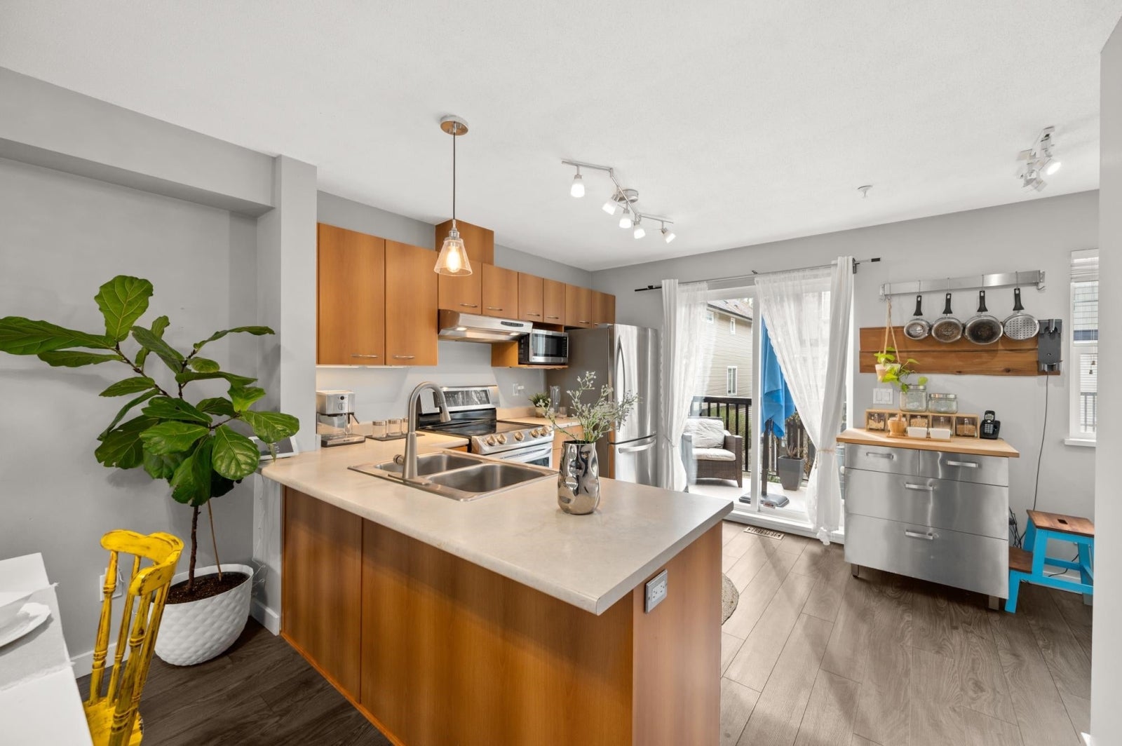 Welcome to Steeplechase in the popular Willoughby neighbourhood! This 2 bedroom & 1 bathroom TOWNHOUSE is the perfect starter home at the price of a condo! Featuring a traditional townhouse layout, with an open concept main floor & 2 large bedrooms upstairs. Updates include laminate flooring, SS appliances, partially re-finished bathroom & paint throughout. Cozy up to the gas fireplace for efficient heating, OR let the forced air furnace heat your home. Prime location in the complex w/ a South West exposed balcony & loads of natural light through your large windows. Fully fenced backyard for your kids/pets. Park in the garage or carport! This quiet location is centrally located to Langley's core amenities/shopping & is steps to transit. Don't miss out, call today!