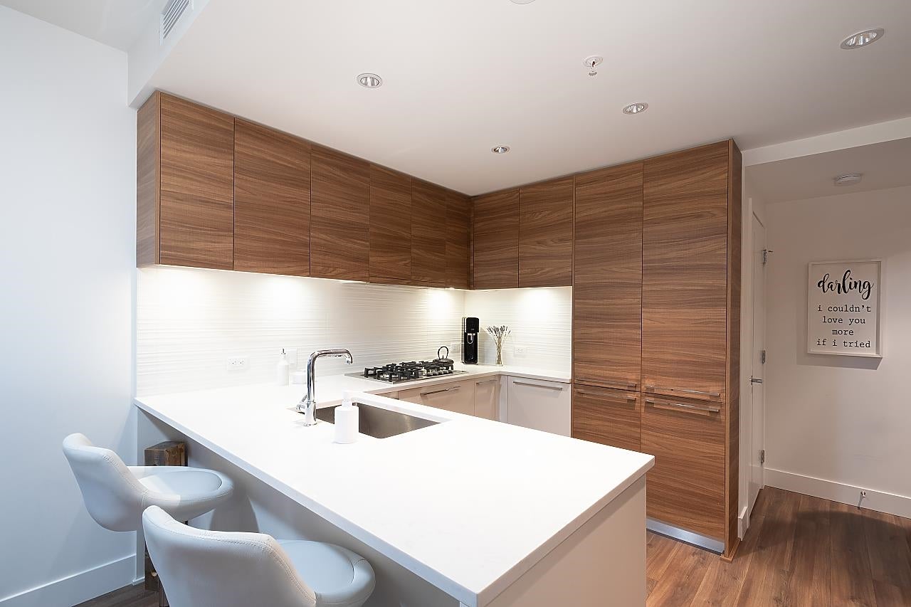 KINGS CROSSING 111 BY CRESSEY!! Bright, southwest facing unit with a large 120 sq ft balcony and located close to the Amenity Centre. Cressey offers 9' ceilings and high end finishings, including built-in upscale appliances, quartz counters, wide plank laminate flooring, a built-in pantry and storage spaces. The Bedroom is south facing and features a walk-in closet and access to the balcony. Heat pump offers central heating and air conditioning! Wonderful amenities include a Concierge, Club House, Exercise Centre, Sauna and Steam Room, ping pong and pool table, and a ball court. Great location in Highgate/Edmonds area close to Edmonds Station, plus there's a supermarket (Buy/LowFoods) in the building! Walk to shopping at Highgate Village, Edmonds Community Centre, parks and schools!