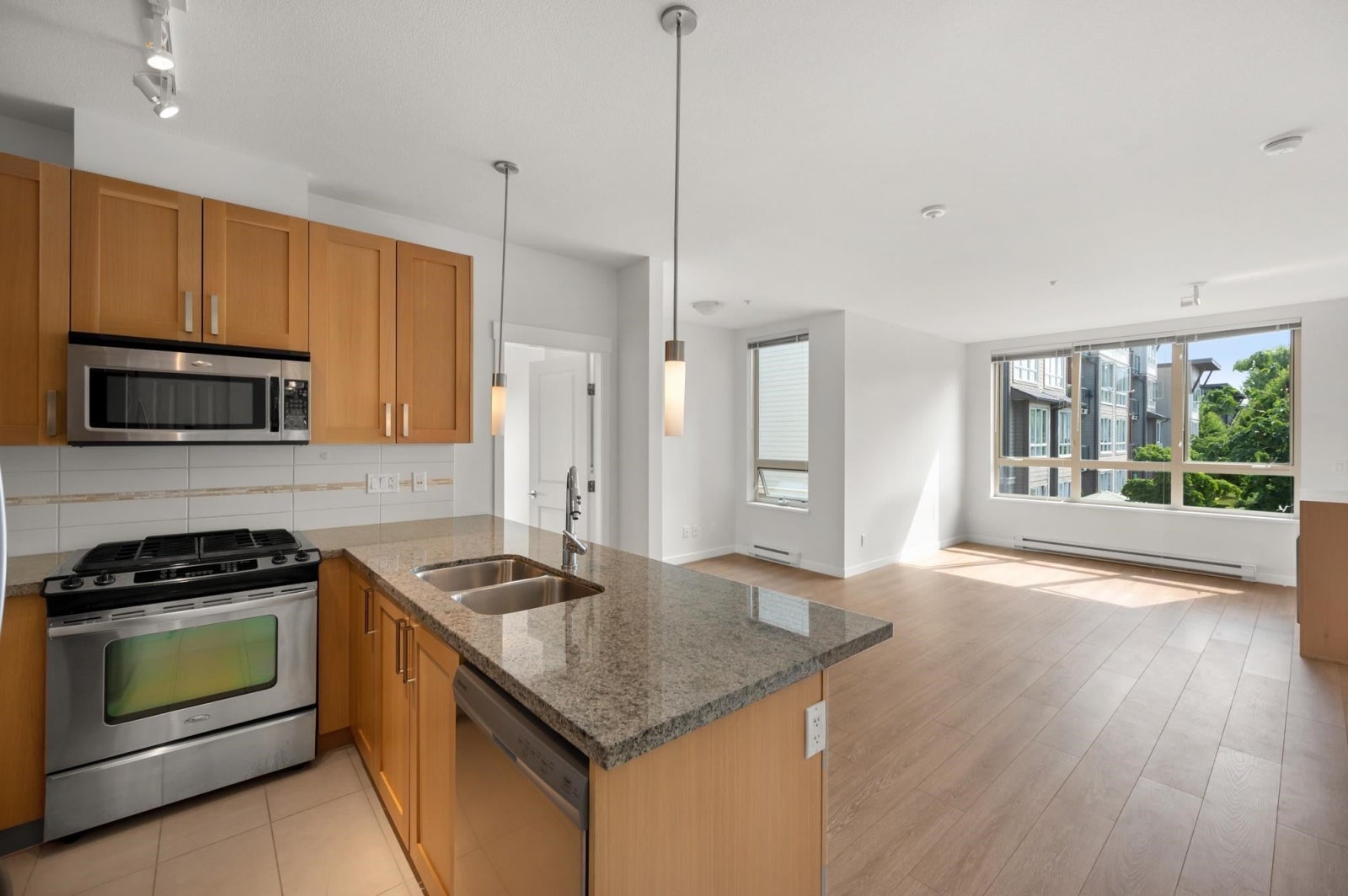 Welcome to The Morgan in the heart of Grandview Heights! This beautiful inside corner unit faces East in the inner complex courtyard, a highly sought after unit location with loads of natural light! Functional layout with 2 bedrooms, 2 bathrooms and an open nook in the main living area. Upgrades include laminate flooring, paint, new HW tank and stainless appliances. The highly sought after complex amenities include an exercise centre, outdoor swimming pool and hot tub, theatre room, lounge with kitchen, bike room and more. A short walk to all of the parks, amenities and shops that Morgan Crossing/Grandview Corners has to offer. 2 PARKING & 1 storage locker included. Rentals allowed (no short term) and 1 dog, or 2 cats are allowed. Don't miss out, call for a private viewing!
