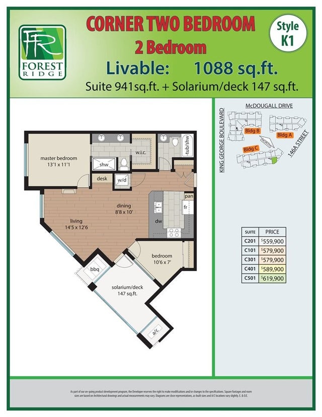 FOREST RIDGE! BUILT BY QUADRA HOMES.K1 plan 941 sf plus147sf solarium. This 2 bedroom CORNER UNIT with 2 Underground Parkings,1 Parking equipped with the plug for an electric car. The gourmet kitchen including a 5 burner natural gas stove, quartz counter tops, Samsung appliances etc.Features: Huge glass Solarium with gas connection for a bbq, air-conditioning, energy efficient heat pump, sound dampening acoustic package, Heated bathroom floors, built in wall safe and high end finishing; a private roll up storage garage. All this Minutes away from Crescent Beach, Highway 99 and South Surrey Park & Ride.Your new home move in ready in Feb. 2021. What are you waiting for?