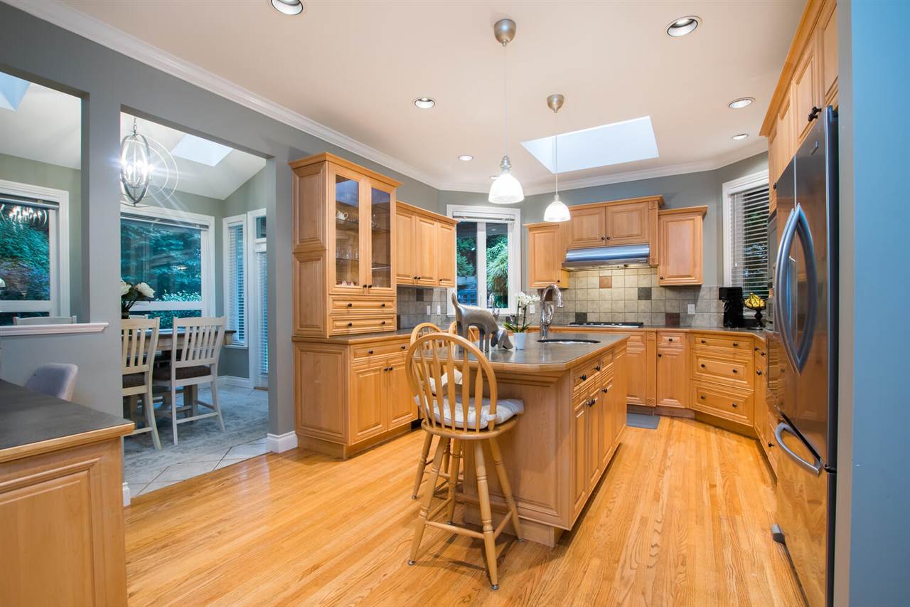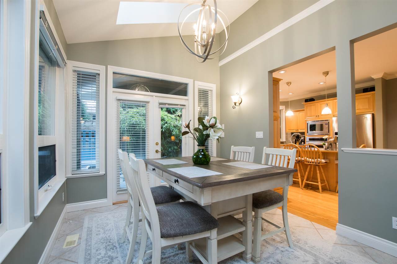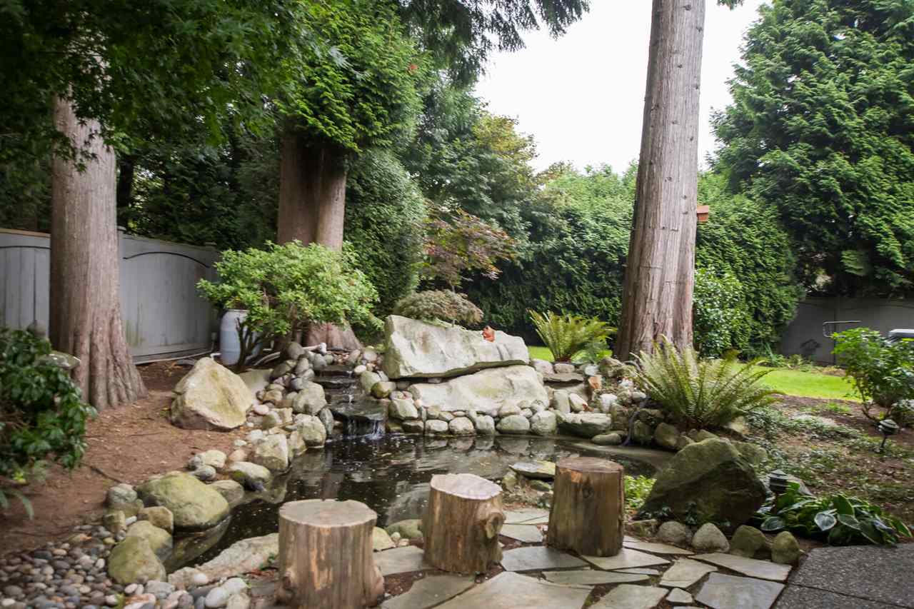 You will love this home at your first sight! Builder did for their own family, situated in a quiet cul-de-sac, backs on to green space. More than 7,800 sq.ft lot boast gorgeous 3 bedroom + Den or 4 beds, with very spacious master on the main. Lovely open floor plan, skylights, 18' family room features elegant fireplace, looks into your extremely private west facing backyard, deck/patio & tastefully koi pond. Hunter Douglas Blinds, KitchenAid appliances, designer's painting, newer furnace & hotwater tank, new wash/dryer, very well maintained and loved home. Famous Bayridge Ele. is around the corner, IB Semiahmoo Sec is 10 mins walking. Close to trail, recreation center, swimming pool, shops, bus stop. Don't miss this one! Priced to sell! Please don't step on the property w/o notice.