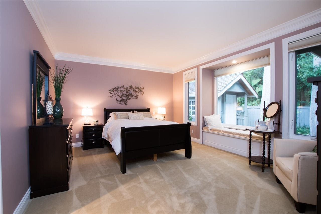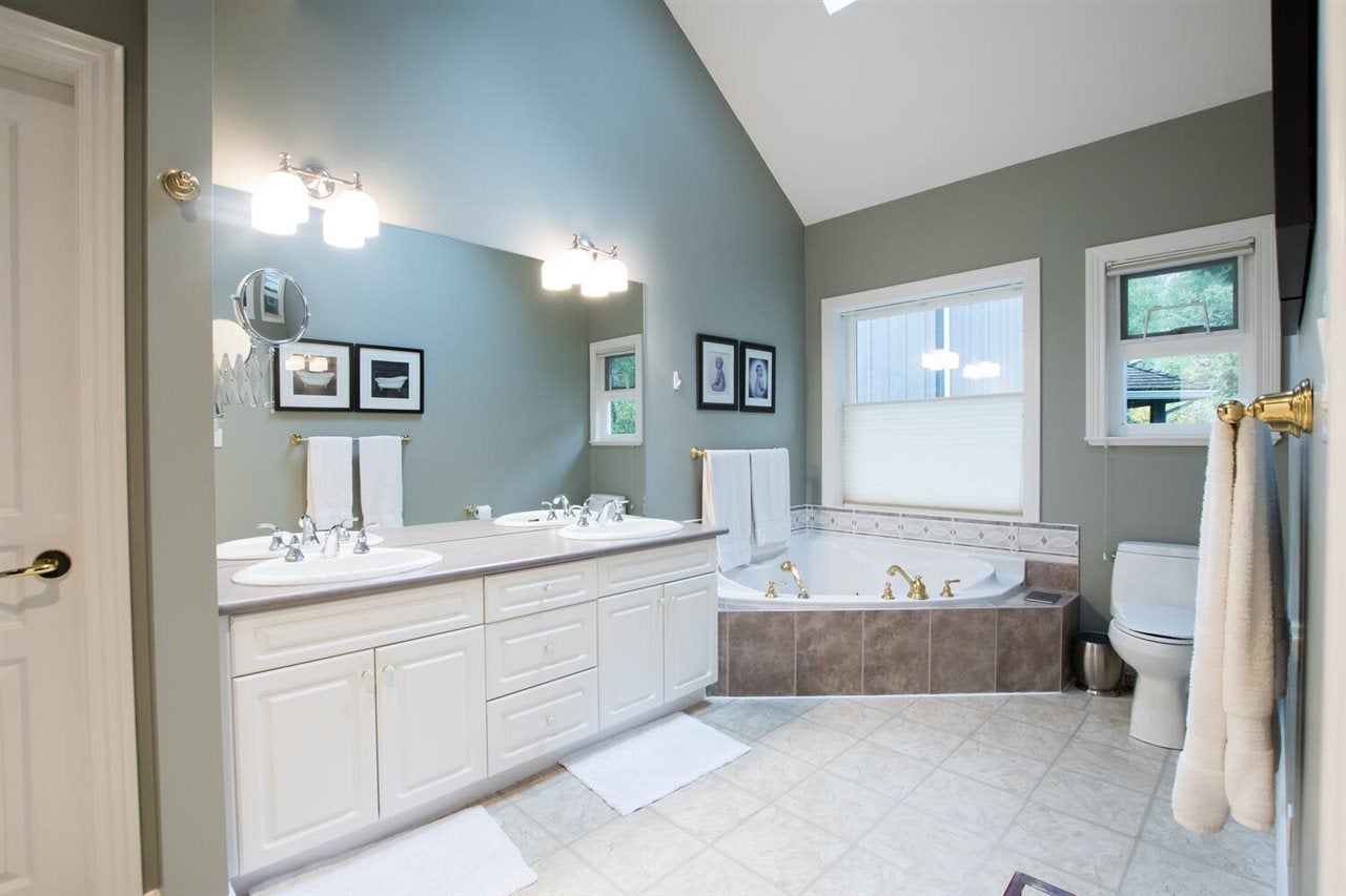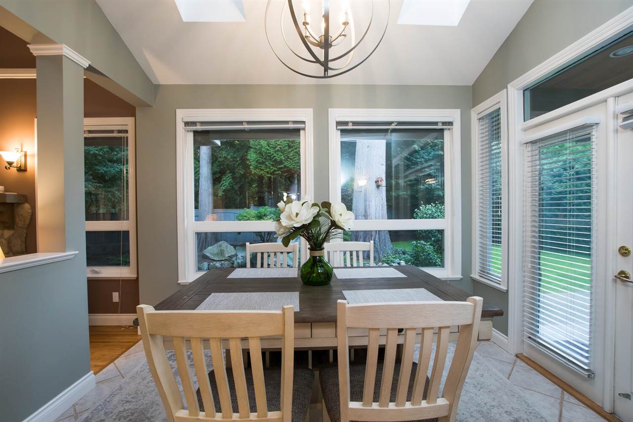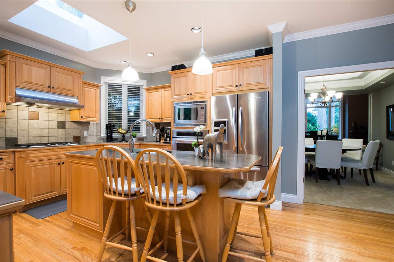 You will love this home at your first sight! Builder did for their own family, situated in a quiet cul-de-sac, backs on to green space. More than 7,800 sq.ft lot boast gorgeous 3 bedroom + Den or 4 beds, with very spacious master on the main. Lovely open floor plan, skylights, 18' family room features elegant fireplace, looks into your extremely private west facing backyard, deck/patio & tastefully koi pond. Hunter Douglas Blinds, KitchenAid appliances, designer's painting, newer furnace & hotwater tank, new wash/dryer, very well maintained and loved home. Famous Bayridge Ele. is around the corner, IB Semiahmoo Sec is 10 mins walking. Close to trail, recreation center, swimming pool, shops, bus stop. Don't miss this one! Priced to sell! Please don't step on the property w/o notice.