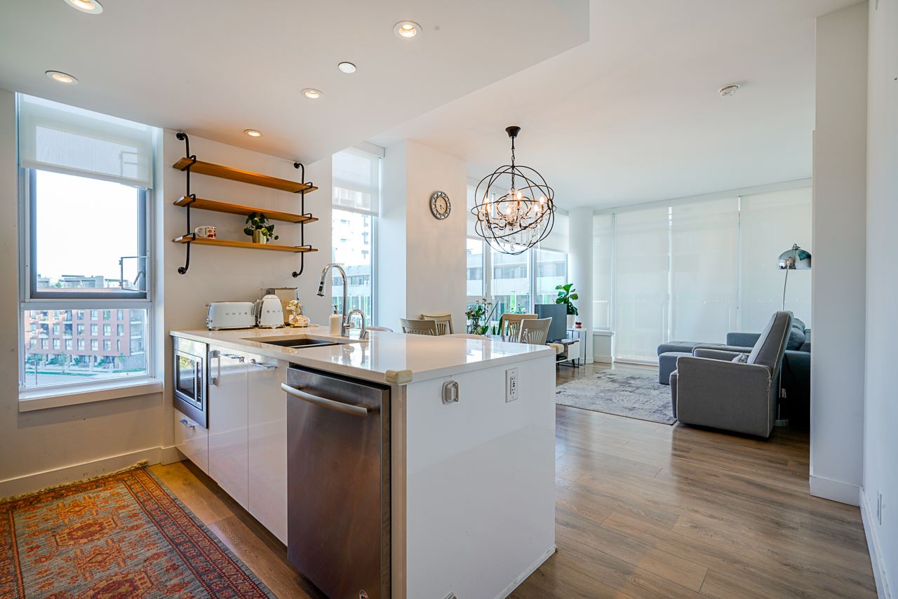 LOCATION! ONE TOWN CENTRE by WesGroup located in Vancouver's newest master community - River District. This bright corner unit boasts 994 sf 2 bedroom 2 bath features 9' ceilings, excellent open floor plan and open kitchen with S/S appliances by JennAir, quartz countertops, Kohler bathroom fixtures, on-demand hot water, air conditioning, and Nest more. A flex room is a bonus. Enjoy World class Club Central, the 14,000+ sf amenity centre featuring a gym, indoor pool, hot tub, sauna, squash court etc. Steps from Starbucks, restaurants, banks, and Save-On-Foods. Shoppers is coming soon. Only 10 mins to Richmond, Metrotown in Burnaby & 15 mins to YVR. Call for private preview!