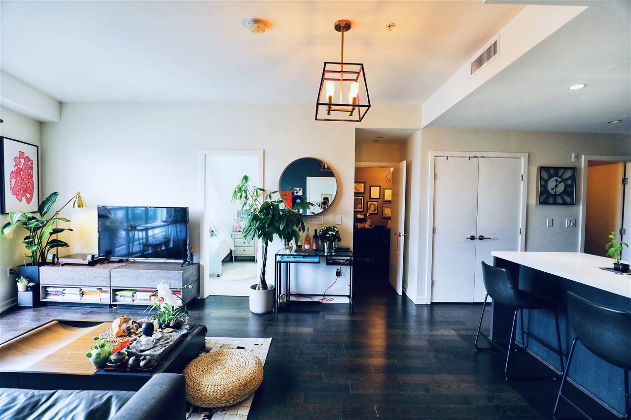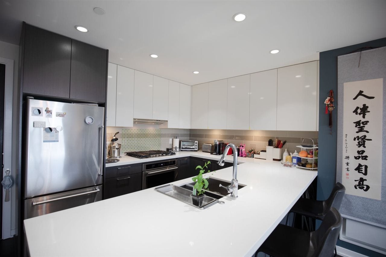 RIVA 3 by Onni: 2 BED + 1 DEN! Like New! located just 10 minutes walk to Lansdowne Shopping Center, sky train, T&T supermarket, restaurants, Olympic Oval and only a 15 minute drive to the airport. This well maintained unit features 9 feet ceiling, Kitchen Aid Stainless appliances, gas range, quartz counter tops and a large kitchen island gives the kitchen and living room a nice spacious feel and open concept and a huge patio. Two separated bedrooms well for privacy. It also comes with a parking and a storage locker. Building amenities include indoor pool, fitness center/gym, sauna/steam room, playground and more. Call now!